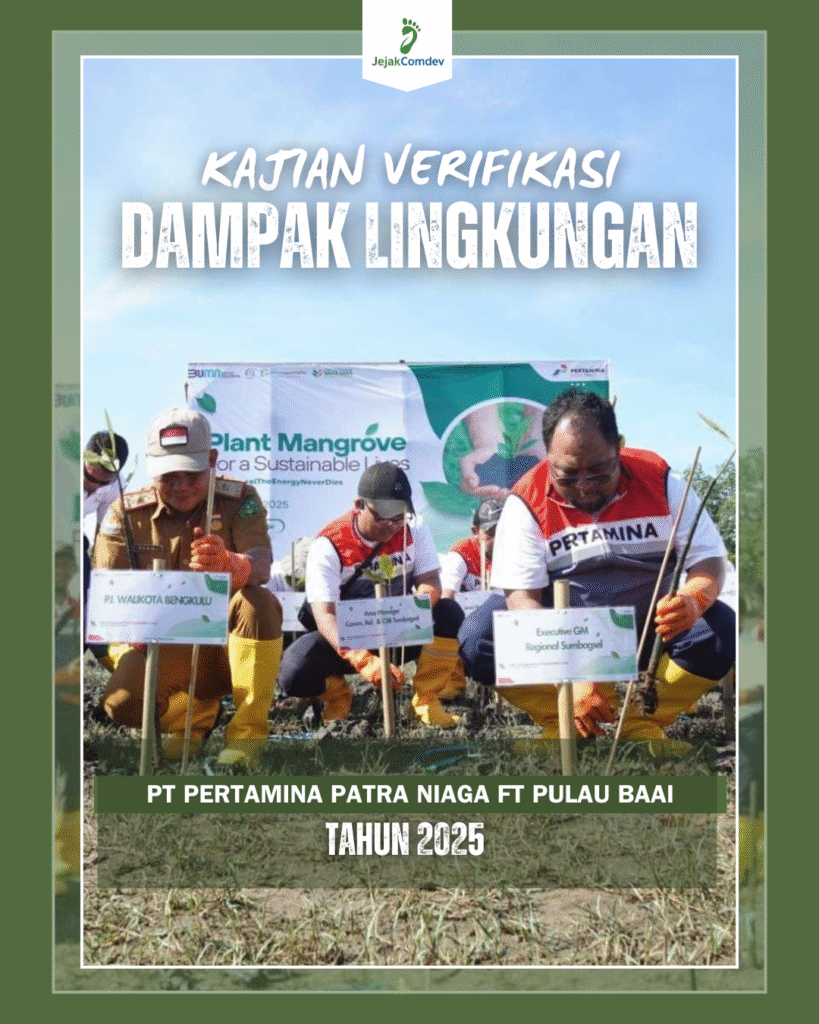 Kajian Verifikasi Dampak Lingkungan dilakukan untuk menilai efektivitas dan kontribusi program lingkungan yang dijalankan oleh PT Pertamina Patra Niaga Fuel Terminal Pulau Baai dalam mendukung pemulihan ekosistem pesisir. Melalui kegiatan penanaman mangrove bersama pemerintah daerah dan masyarakat, program ini berperan dalam meningkatkan ketahanan ekosistem pesisir, mengurangi abrasi, serta memberikan manfaat ekologis dan sosial bagi wilayah Bengkulu.