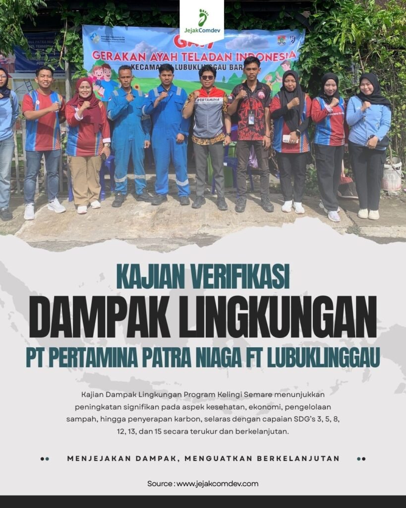 Kajian Verifikasi Dampak Lingkungan PROPER yang dilaksanakan pada Program Kelingi Semare PT Pertamina Patra Niaga Fuel Terminal Lubuklinggau merupakan proses penilaian berbasis data untuk mengukur efektivitas program TJSL terhadap aspek lingkungan, sosial, dan ekonomi masyarakat.